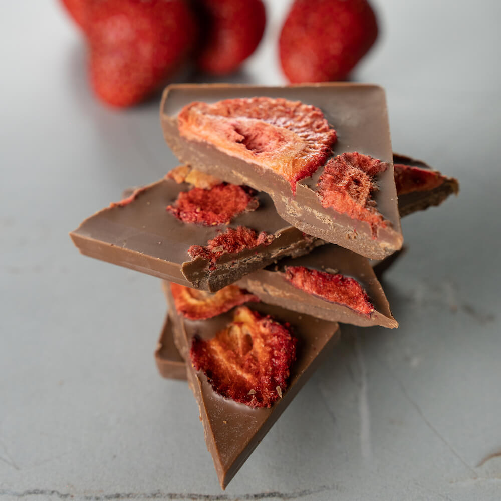 Wegańska czekolada o kremowej konsystencji z dodatkiem truskawek propozycja dla miłośników mlecznych czekolad, ale w wersji wegańskiej.