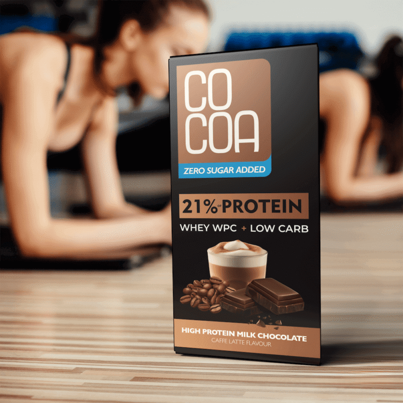 Czekolada proteinowa o subtelnym smaku latte – kremowa czekolada, która zawiera aż 21% białka!