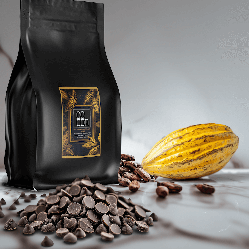 Kuwertura w czekoladowych dropsach poprzez obróbkę termiczną zyskuje przepiękny połysk, charakterystyczny trzask przy łamaniu oraz długo wyczuwalny smak. Jej nazwa wywodzi się z języka francuskiego i dosłownie oznacza kołdrę lub pokrywę. Nie jest to przypadek – z kuwertury powstaje przede wszystkim znakomita polewa czekoladowa. Nasza autorska surowa czekolada to prawdziwa gratka dla miłośników czekolad! Jest subtelna w smaku i pozbawiona mocnej goryczy. Surowa czekolada zapewnia nam intensywny smak ziaren peruwiańskiego kakaowca. Gwarantujemy, że ta kombinacja zaskoczyła pozytywnie już niejednego smakosza słodkich przekąsek!