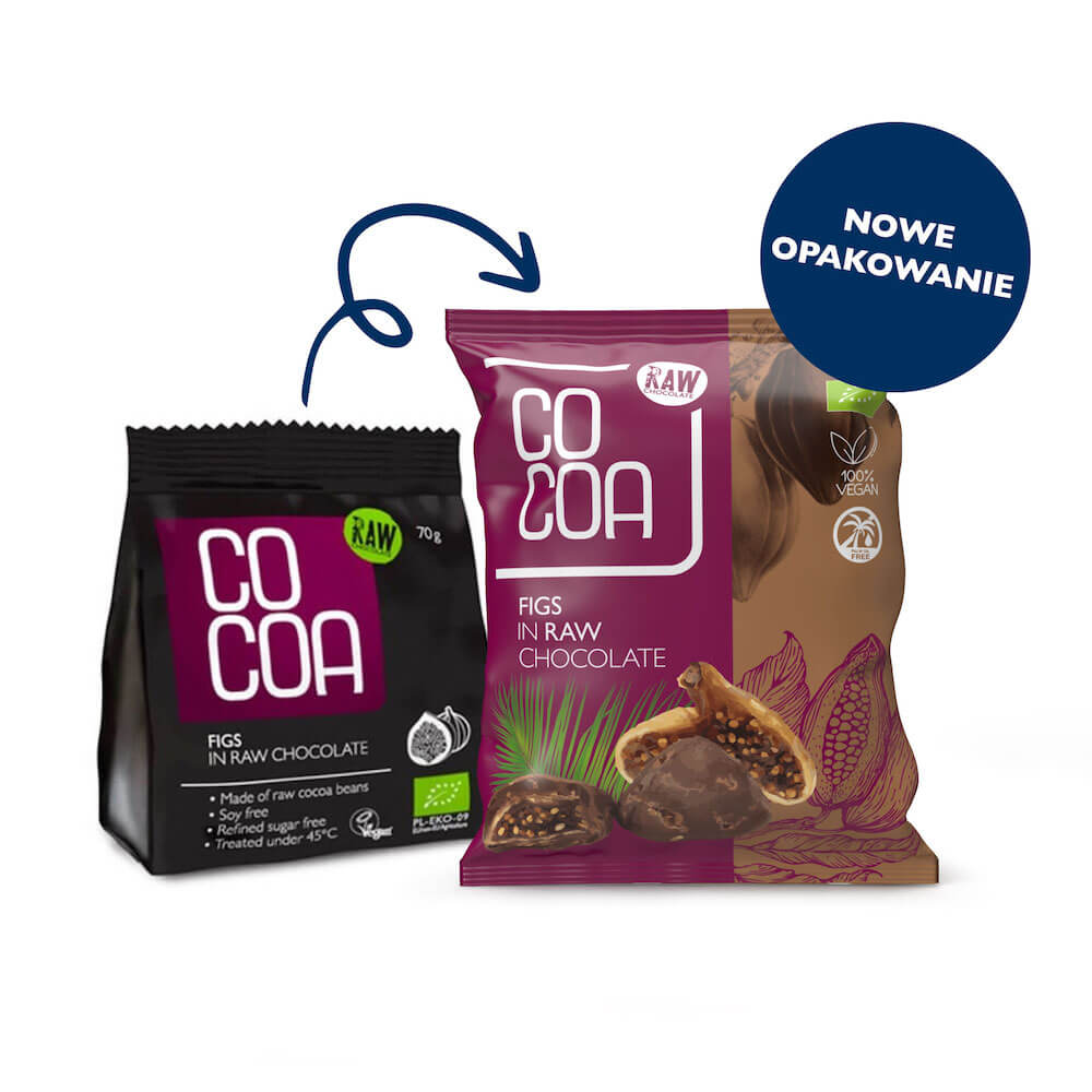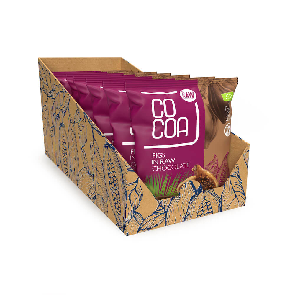 Niebiańskie połączenie słodkiej, delikatnej figi z surową czekoladą, to prawdziwa uczta dla zmysłów. Figa poza zawartością cennych pierwiastków i właściwościami odkwaszającymi organizm, ma najwyższą zawartość błonnika ze wszystkich bakalii, co czyni ją zdrową i lekką przekąską.