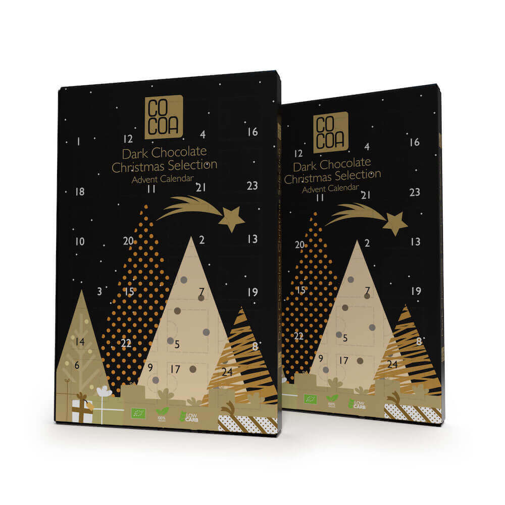 Kalendarz adwentowy zawiera naszą klasyczną gorzką czekoladę wytworzoną z surowych ziaren kakaowca, w której gorycz surowego ziarna przenika się z karmelową nutą nektaru z kwiatu palmy kokosowej. Smak tej czekolady zaskakuje łagodnością, przy czym nie jest pozbawiona swojego intensywnego charakteru.