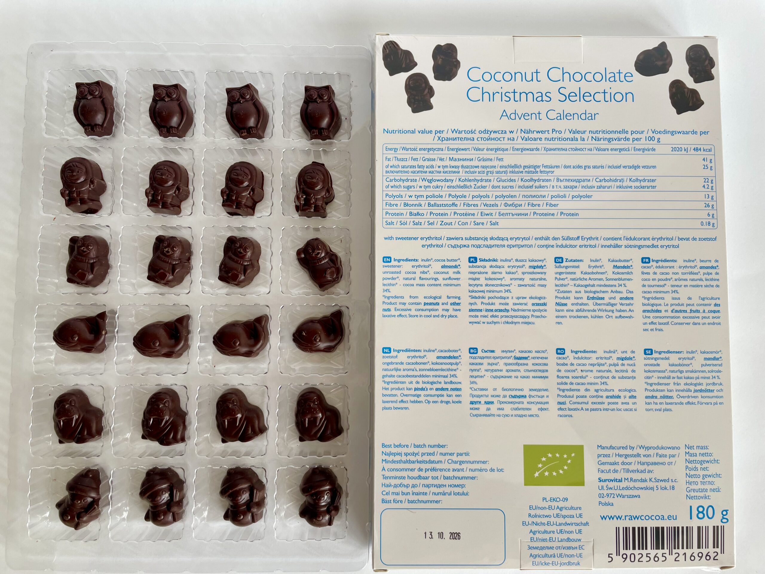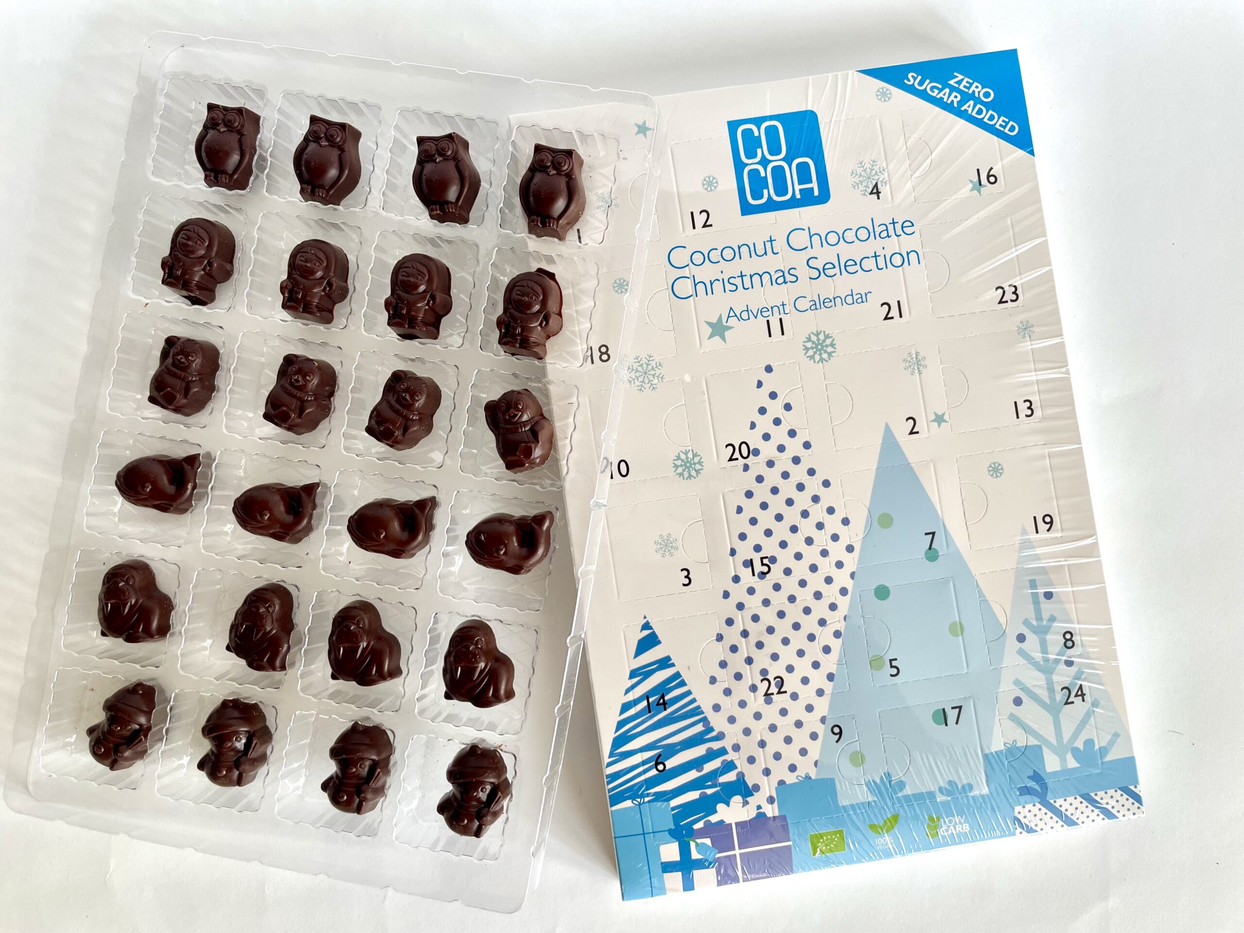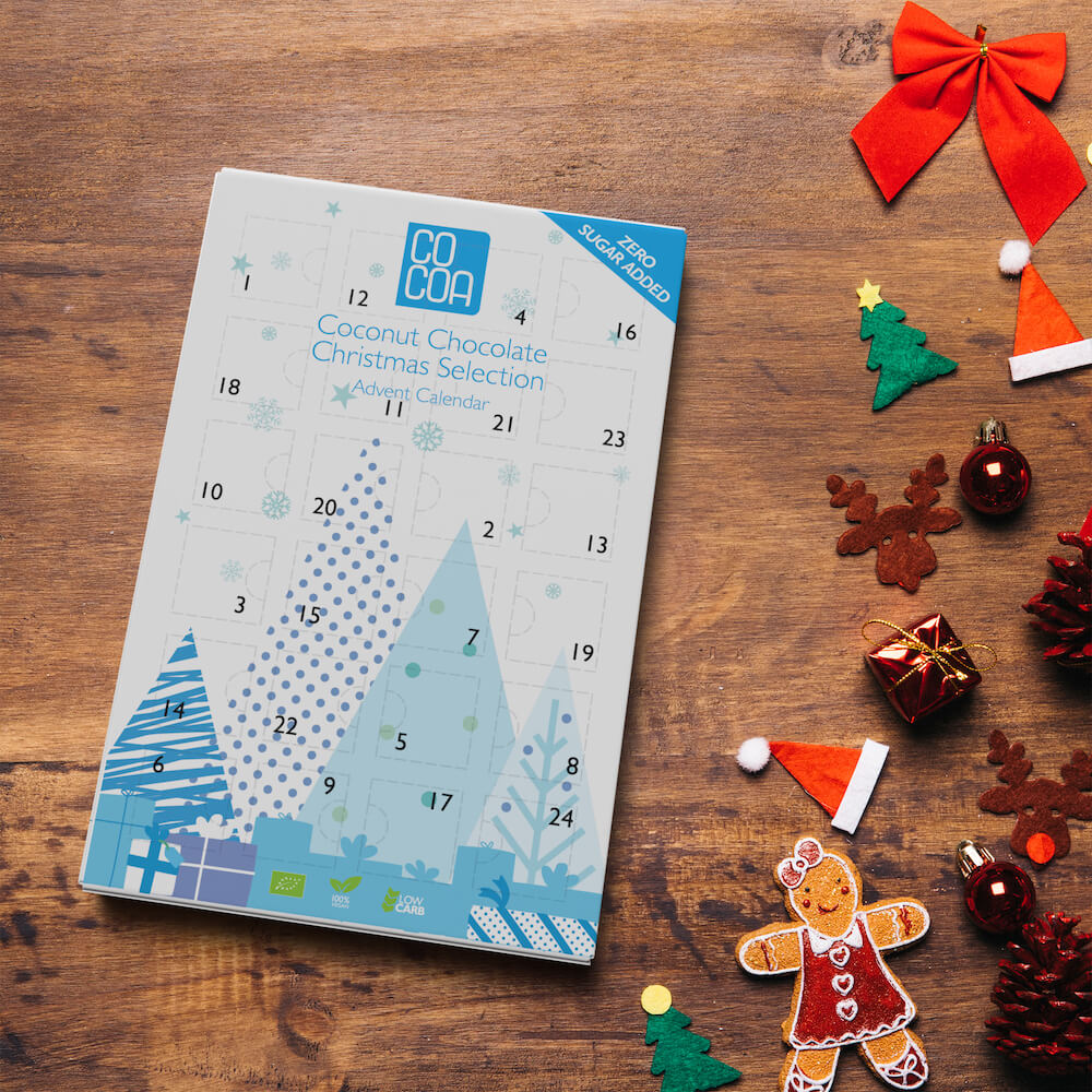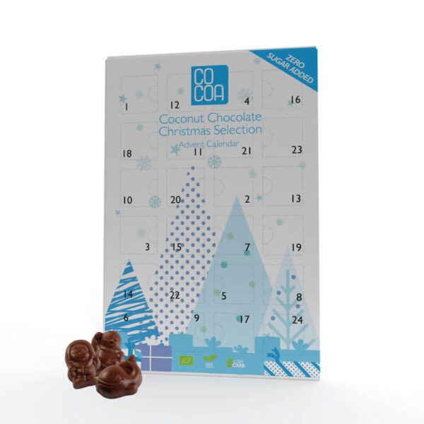 Niezwykle kremowa wegańska czekolada kokosowa zamknięta w kalendarzu