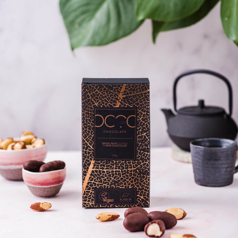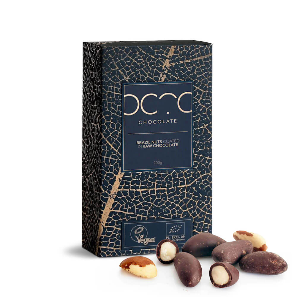 Klasyczne połączenie chrupiących orzechów brazylijskich oraz ciemnej czekolady to propozycja dla miłośników chrupkości oraz delikatności czekolady, którą są oblane. Surowa czekolada to delikatna propozycja pozbawiona goryczy charakterystycznej dla ciemnych czekolad.