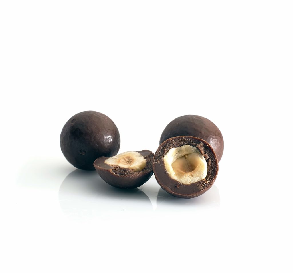 Pyszne orzechy laskowe zanurzone w ciemnej czekoladzie