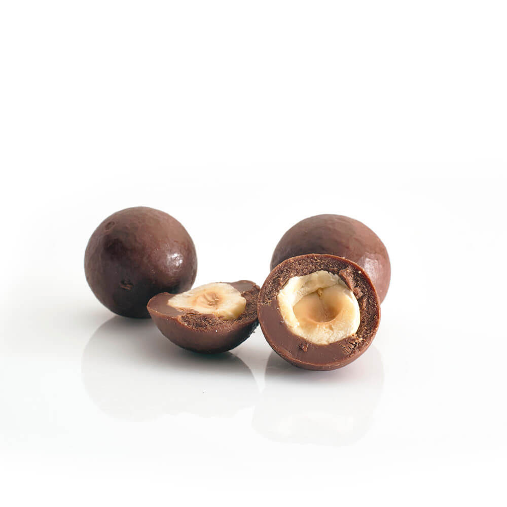 Pyszne orzechy laskowe zanurzone w czekoladzie kokosowej