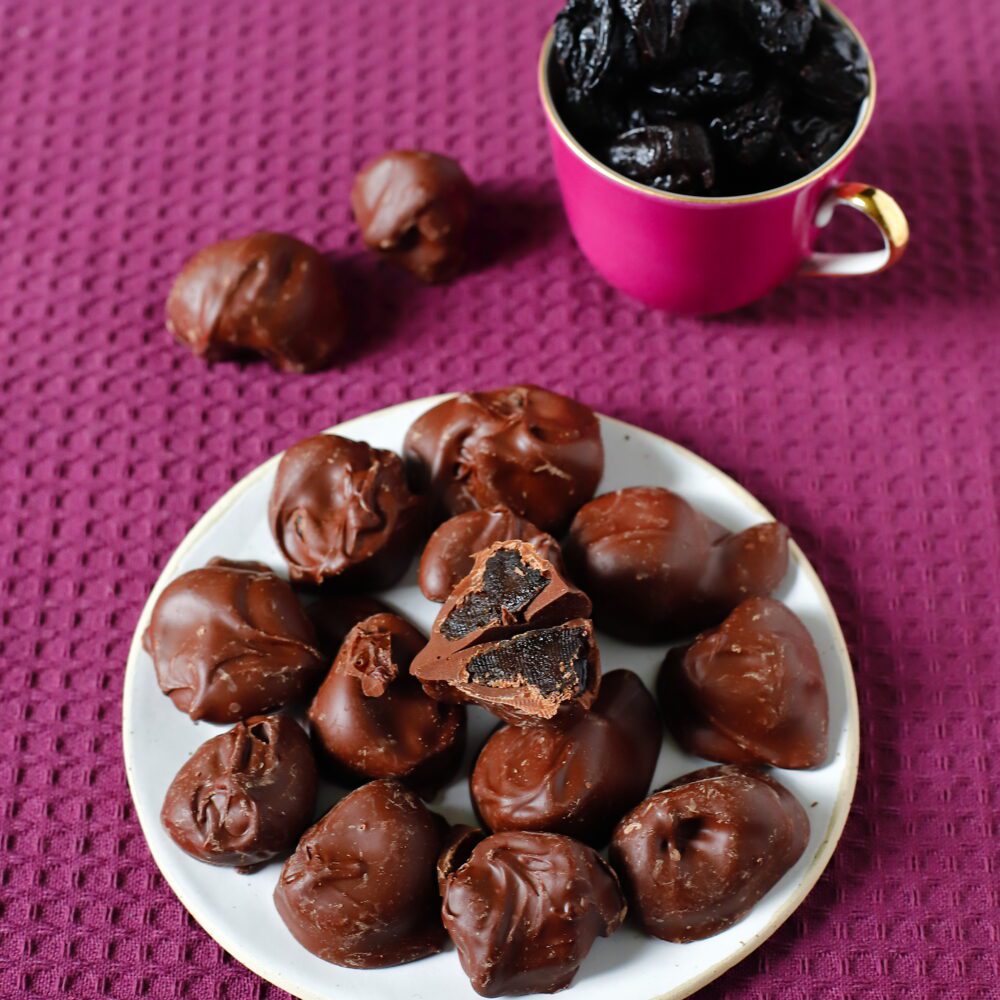 Pyszne śliwki zanurzone w 65% ciemnej czekoladzie