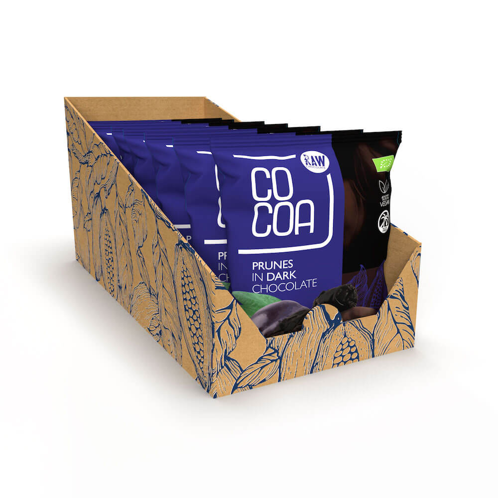Ciemna czekolada RAW, którą oblana jest śliwka, powstała podczas unikalnego procesu odbywającego się w odpowiednio niskiej temperaturze, dzięki czemu oferuje ona mnóstwo wartości odżywczych oraz autentyczny smak surowego kakao. Produkt nie zawiera cukru ani mleka krowiego, dlatego stanowi odpowiednią przekąskę również dla osób dbających o linię lub cierpiących na nietolerancję laktozy.